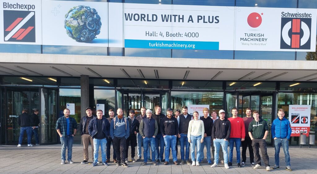 Im Oktober 2025 machte die Meisterklasse Metallbau im Rahmen ihrer Weiterbildung einen spannenden Ausflug zur Fachmesse Blechexpo / SCHWEIßTEC in Stuttgart. Ziel der Exkursion war es, aktuelle Trends und innovative Technologien aus der Blechbearbeitung, Fügetechnik und Metallverarbeitung zu entdecken und praxisnahe Einblicke in die industrielle und handwerkliche Fertigung zu gewinnen.